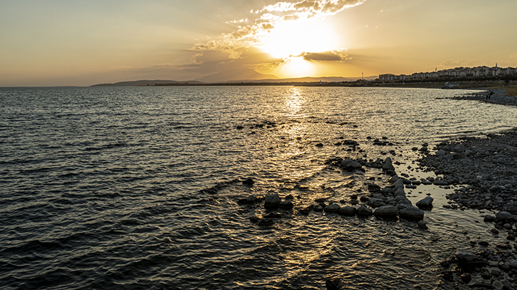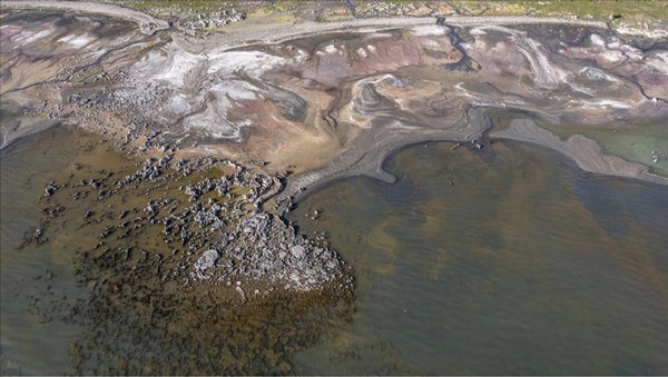 Sıcaklıkların artmasına bağlı buharlaşma ve yağışların azalmasıyla seviyesi düşen Van Gölü'nün kıyı kesimlerinde, asırlar önce su altında kalan yapılar ortaya çıkmaya devam ediyor.