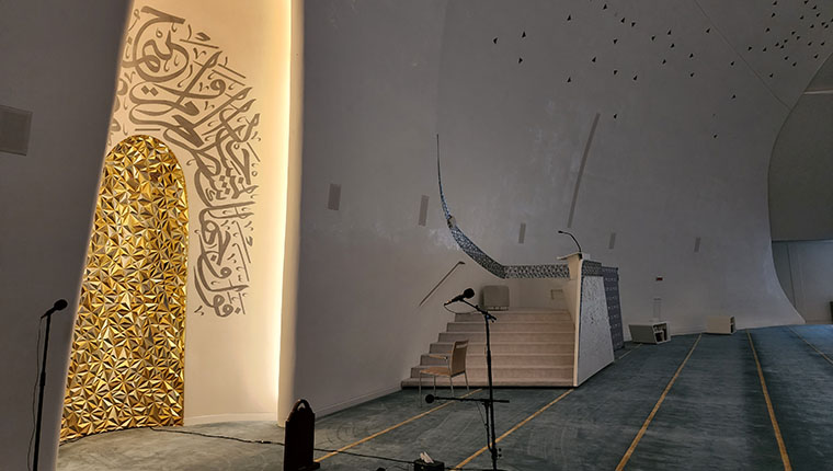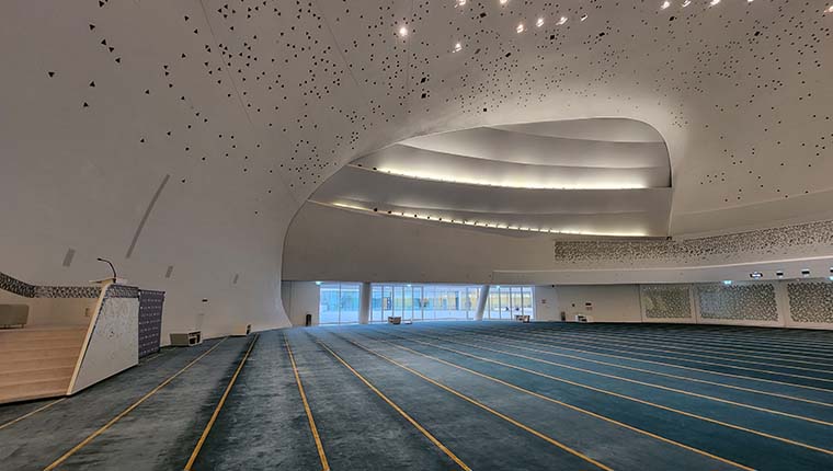 Hamad Bin Khalifa Üniversitesi İslami Araştırmalar Fakültesi'ne bağlı cami, zarif mimarisiyle göze hitap ederken ilim ve ibadet için de hem güzel hem de konforlu bir ortam sunuyor.