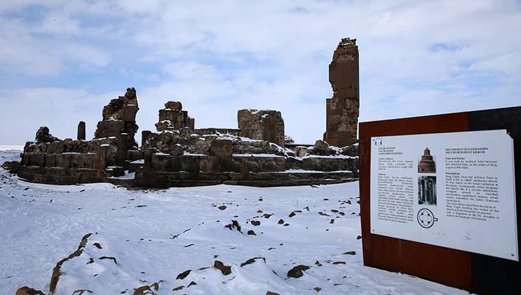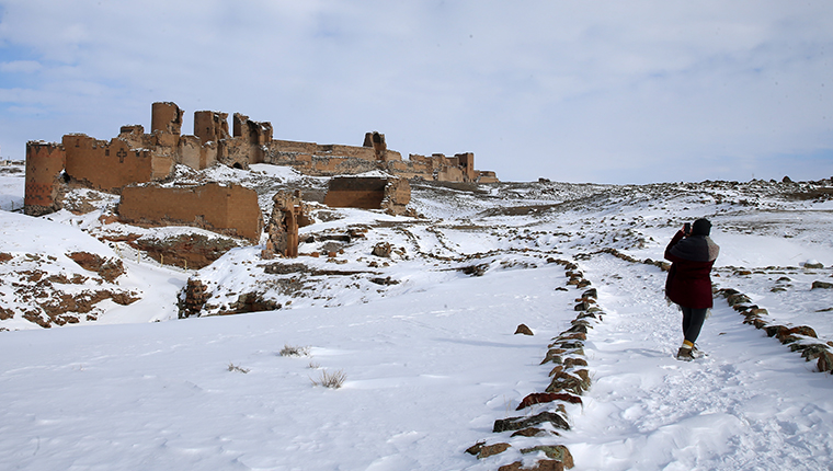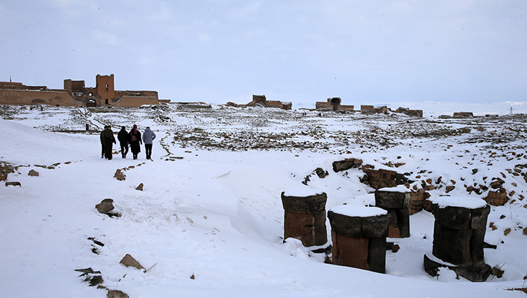 Kars Ani Harabeleri Antik Kenti, şehre gelen turistlerin başlıca ziyaret noktaları arasında yer alıyor. Karlar altında kalan Antik Kent, turistlere güzel manzaralar sunuyor.
