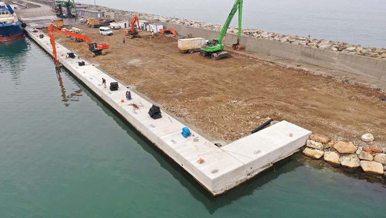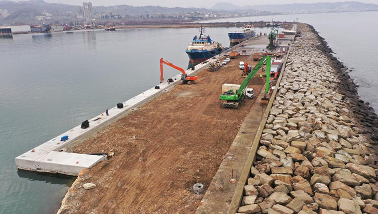 İnşaatı devam eden Ünye Konteyner Limanı'nda Mart ayından itibaren bir ilk gerçekleşecek ve tır taşımacılığı yapan Ro-Ro gemileri yükleme yapabilecek.