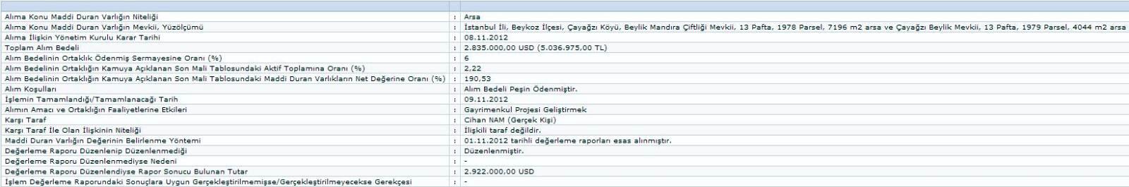 Atakule Gayrimenkul Yatırım Ortaklığı (GYO), Beykoz Çayağzı bölgesi sınırlarında kalan 7 bin 196 metrekare ve 4 bin 44 metrekarelik iki arsayı 5 milyon 36 bin liraya satın aldı. Arsalar üzerinde gayrimenkul projesi geliştirecek olan Atakule GYO 5 milyon 36 bin liranın tamamını peşin ödedi.