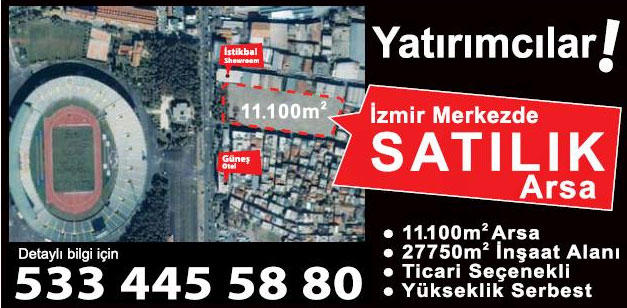 İzmir Merkez'de bulunan 11 bin 100 metrekarelik arsa satışa çıkarıldı