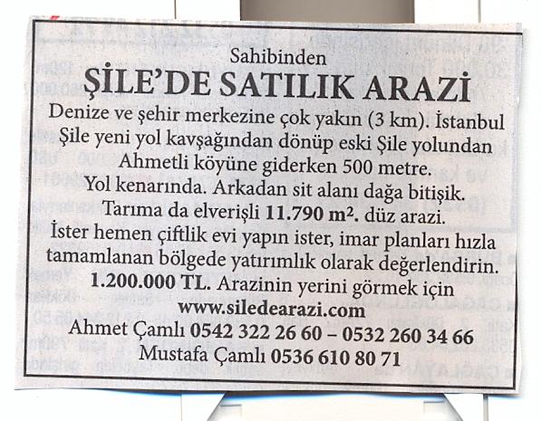 Şile’de sahibinden satılık arazi! 1.2 milyon liraya!