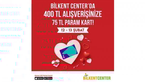 12 ve 13 Şubat tarihlerinde Bilkent Center’da en fazla iki fiş ile toplamda 400 TL ve üzeri alışveriş yapan ziyaretçiler, mobil uygulama üzerinden işlemlerini yaparak anında harcamaya hazır 75 TL değerinde Param Kart’ın sahibi oluyor.