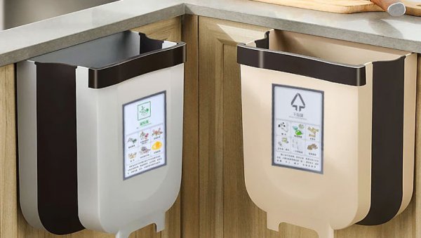 Katlanır çöp kovanızı mutfak dolabınıza asabilirsiniz!