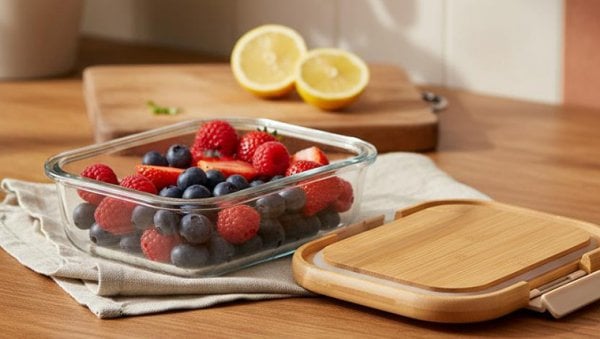 Doğal bambu malzemeden üretilen kapaklar, dayanıklı yapısıyla uzun ömürlü kullanım sağlarken; cam yüzeyin kolay temizlenebilir özelliği hijyenik bir saklama alanı sunuyor.