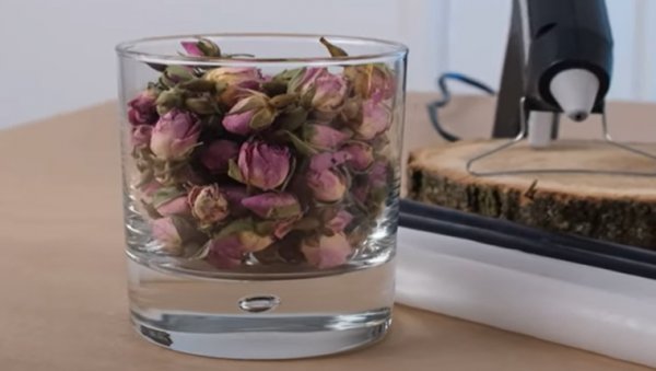 Cam şişeden mumluk yapımı için ise içine bir miktar su doldurulan cam şişelere kuru çiçekler eklenerek şişenin ağız kısmına mumları yerleştirmek yeterli.