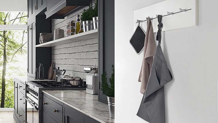Mutfak duvarlarınızda esnek raf ve askı sistemleri kullanarak esneklik kazanın.