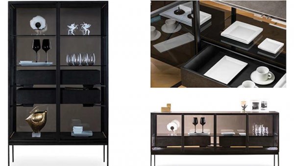 Cam ve metalin ustalıkla birleştiği bir mücevher kutusunu andıran seri, konsol ve büfeden oluşuyor. Zarif metal ayakların üzerinde yükselen büfesi bulunduğu mekâna değer katarken, çekmecelerinde kullanılan seramik, endüstriyel malzemelerin yaşam alanlarına nasıl uyum sağladığını gösteriyor.
