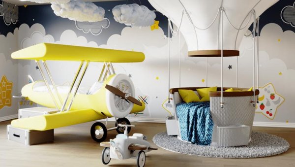 Uçmayı seven çocuklar için ideal çocuk odası!