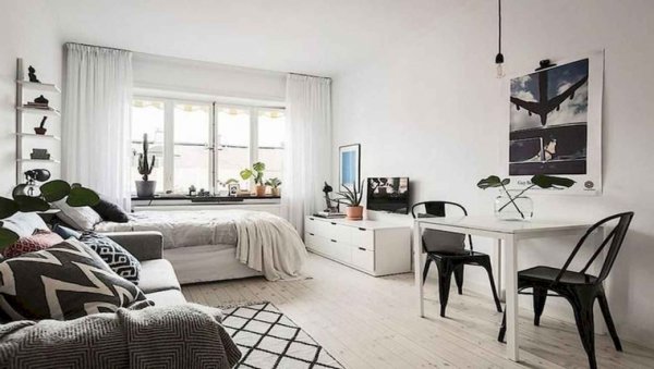 Stüdyo dairelerde tek bir oda olduğundan dolayı bütün ihtiyaçları aynı odada gidermek gerekebiliyor. Bunun için odada ayrı ayrı bölümlere oluşturmak hem ambiyans hem de görüntü bakımından önemli bir etken olabilir.