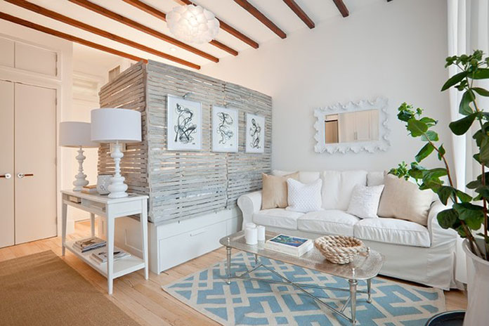 Genel olarak ev dekorasyonlarında mobilyaları duvara bitişik olarak yaslayınca yerden tasarruf edildiği düşünülür. Ancak bu dekorasyon tarzı odanın içinin daha dar görünmesini sağlar ve alanın nefessiz kalmasına neden olur. Bu nedenle stüdyo dairelerde odanın dekorasyonunda koltuk takımları veya da kitaplık gibi mobilyalar duvara yaslamadan yerleştirilebilir.