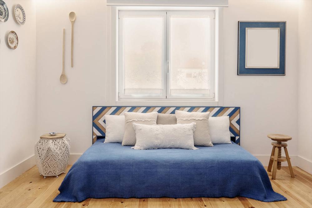 Bir farklı duvar dekorasyonunda ise yatak başlığının olduğu duvara geometrik bir boya uygulaması yapmak. Böylelikle alanın atmosferi de şık bir şekilde değişmiş olur. Ancak renk seçiminde sof ve açık renkler tercih edilmelidir. Dikkat dağıtabilecek renklerden uzak durulmalıdır. Ayrıca boya yerine duvar kağıtlarından da faydalanılabilir. Küçük desenli, sade, sof renklerin hakim olduğu alternatifler kullanılabilir.