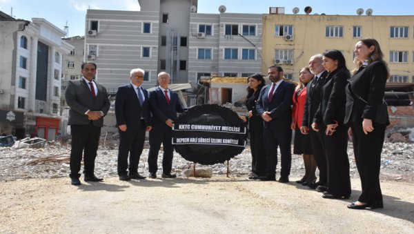 KKTC Meclisi, Adıyaman'da yıkılan otelin önüne çelenk bıraktı