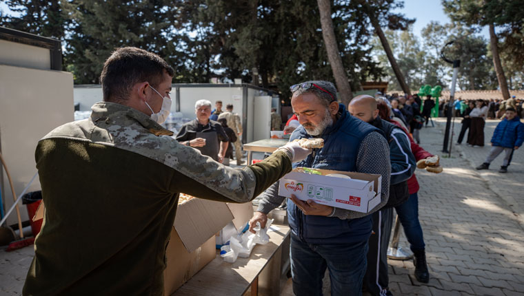 Depremlerin ardından İnsani Yardım Tugay Komutanlığına bağlı personel, Defne ilçesi Harbiye Mahallesi'ndeki çadır kente, bakanlıklar ve sivil toplum kuruluşları işbirliğinde okul, sahra mutfağı, ekmek fırını ile banyo gibi donatıların olduğu çadırlar kurdu.
