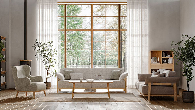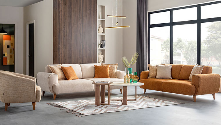 Sessiz lüks anlayışında renk ve malzeme seçimi belirleyici bir rol oynuyor. Krem, bej, açık kahve ve taş tonlarının hakim olduğu sade palet, doğal dokular ve yalın formlarla birleşerek mekanda sakin ve dengeli bir atmosfer oluşturuyor. Sessiz lüks yaklaşımının merkezinde yer alan oturma grupları, konfor ve estetiği yalın bir dilde bir araya getiriyor. Armin koltuk takımı, modern ve dengeli duruşuyla sofistike bir atmosfer sunuyor. Bu anlayışın öne çıkan parçalarından Codiva köşe takımı, sade formu, nötr tonları ve yumuşak dokusuyla fısıldayarak bir estetik sunuyor. Modüler yapısı ve yatak olabilme özelliğiyle fonksiyonelliği estetikle buluşturan Codiva, yaşam alanlarında rafine bir konfor sağlıyor. Calina Bohem koltuk takımı, yumuşak formu ve pamuk dokulu yüzeyiyle mekâna sıcak ve davetkar bir his kazandırıyor. Senta Frig Vazo doğadan ilham alan yapısıyla rafine bir dokunuş sunuyor. Hardy Yemek Odası, masif ayak detayları, rustik metal kulpları ve doğal renk sessiz lüks akımına uyum sağlıyor. Bench ve sandalyelerde kullanılan oturma minderleriyle konfor ön planda tutulurken; yavaşlatıcı menteşe sistemi ve fonksiyonel depolama alanları, günlük kullanımı kolaylaştırıyor. Yeni Helsa koltuk takımı ise doğal dokusu ve ahşap ayak detaylarıyla yaşam alanlarına zamansız bir estetik ortaya koyuyor. Minimal ve bilinçli bir dekor yaklaşımıyla tamamlanan yaşam alanlarında; Maren orta sehpa yalın formu ve doğal yüzeyleriyle mekanda güçlü bir odak noktası oluşturuyor.