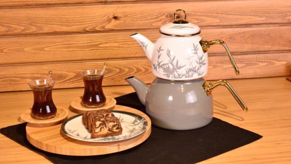 Sofra sunumlarını kusursuz bir görünüme kavuşturan Bambum emaye çaydanlık takımları, servis tabakları ile sağladığı uyum sayesinde göz kamaştırıyor.