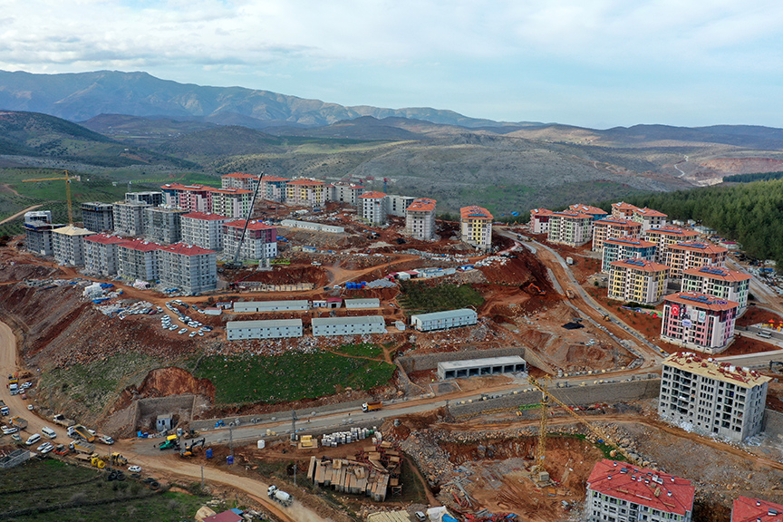 Konutların bulunduğu alanlarda okul, cami, park, alışveriş merkezi gibi sosyal ve ekonomik ihtiyaçların giderilmesi için de inşa çalışmalarının sürdüğünü aktaran Karaoğlu, "Çok yoğun bir çalışma var. Depremden sonra 45. gün temeller atıldı. Biz daha çok rezerv alan dediğimiz şehrin bitişiğindeki alanlarda, yeni konutlar yaptık ama şimdi döndük artık yıkılan şehir merkezlerinde devam eden konut alanlarımızda da incelemelerde bulunacağız. Çevre, Şehircilik ve İklim Değişikliği Bakanlığımızca dışarıda, rezerv alanlarda değil şehir merkezinde yıkılan bölgelerin yeniden ihyası ve inşasıyla ilgili yoğun çalışma var. İnşallah bundan sonra şehir merkezlerinin ayağa kalkmasıyla ilgili de çalışmalarımız devam edecek." ifadelerini kullandı.
