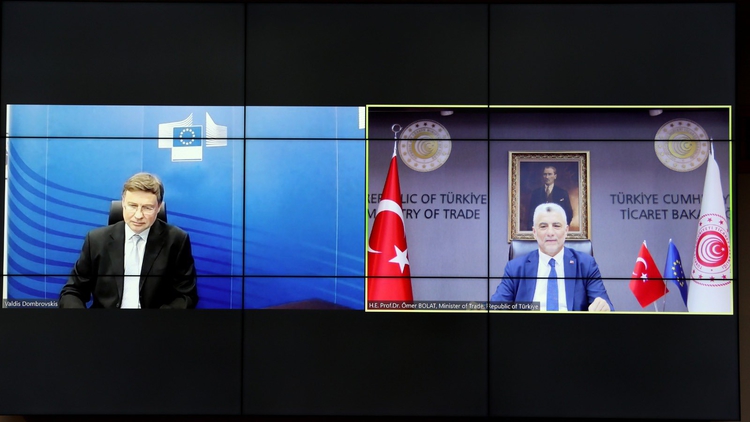 Ticaret Bakanı Ömer Bolat, Avrupa Komisyonu Ticaretten Sorumlu Başkan Yardımcısı Valdis Dombrovskis ile son derece pozitif bir çevrimiçi görüşme yaptığını belirterek, "Görüşmede, Türkiye ve AB arasında yeni dönemde ticari ve ekonomik ilişkilerin geliştirilmesi için ortak bir yol haritası üzerinde uzlaştık." ifadesini kullandı.