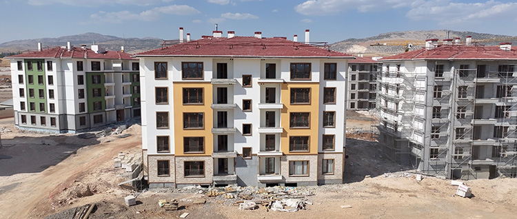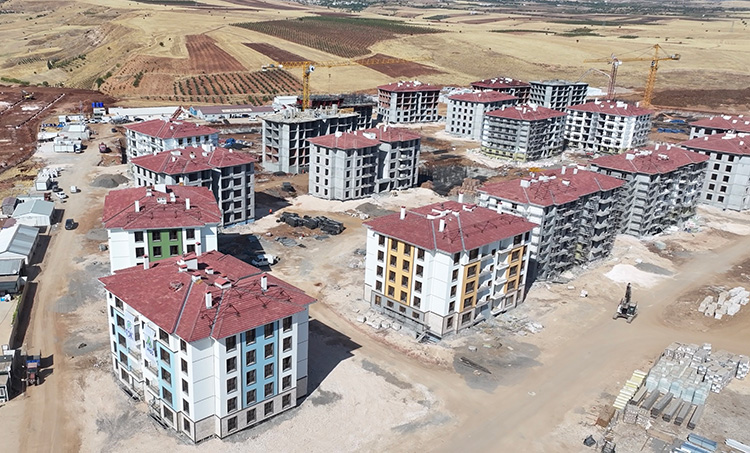 Pazarcık ve Elbistan merkezli 7,7 ve 7,6 büyüklüğündeki depremlerden etkilenen kentte kalıcı deprem konutlarının inşası sürüyor.