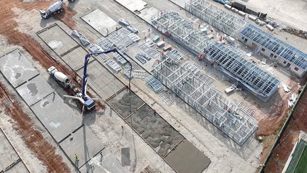 Çevre, Şehircilik ve İklim Değişikliği Bakanlığı tarafından Adıyaman'da yapımı devam eden prefabrik ve hafif çelik konstrüksiyondan oluşan geçici konutlardaki hummalı çalışma, dronla hızlandırılmış çekim tekniği kullanılarak kayda alındı.