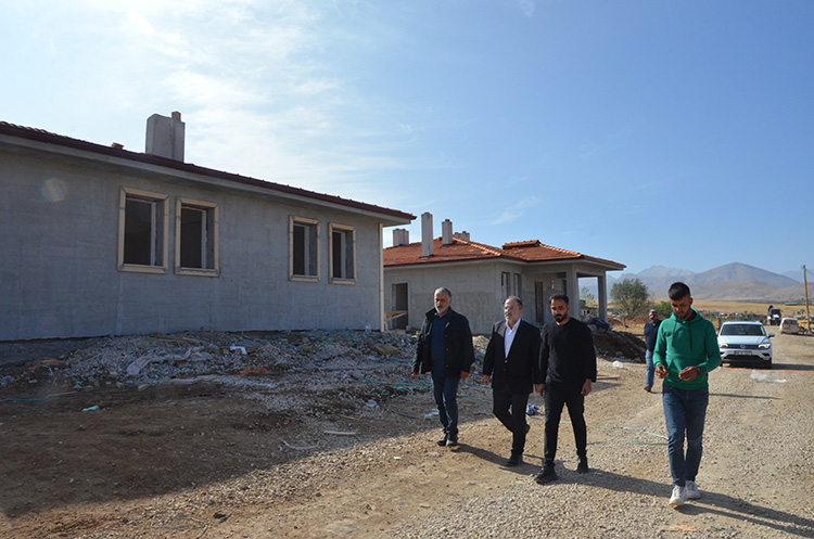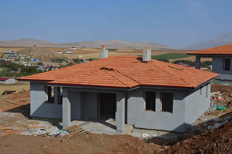 Depremlerden en fazla etkilenen mahallelerdeki afetzedelerin, 3+1 şeklinde tek katlı olarak projelendirilen köy evlerine kıştan önce yerleşmesi için çalışılıyor.