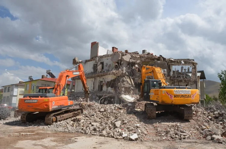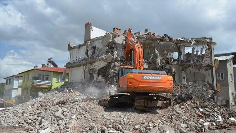 İlçe merkezi ile kırsal mahallelerde yıkım kararı verilen ağır hasarlı binalar, AFAD, Çevre ve Şehircilik İl Müdürlüğü, kaymakamlık ve ilçe belediyesi koordinasyonunda yüklenici firmalar tarafından yıkılıyor.