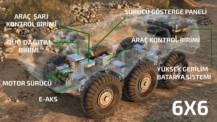Seri hibrit mimari ile askeri araçlardaki menzil sorunu da ortadan kalkacak. Geliştirilen dümenlenebilir yapıda e-aks sisteminin 4x4 (20 ton), 6x6 (30 ton), 8x8 (40 ton) araçlarda kullanımı mümkün olacak.