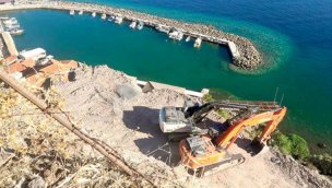 Çanakkale'nin Ayvacık ilçesinde Assos Antik Kenti yakınındaki antik liman bölgesinde başlatılan kaya ıslahı çalışmaları sürüyor.