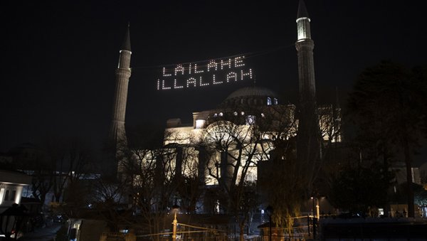 Cumhurbaşkanı Recep Tayyip Erdoğan'ın katıldığı Cuma namazıyla 24 Temmuz 2020 yılında ibadete açılan Ayasofya-i Kebir Camisi, ramazan ayına sayılı günler "La İlahe İllallah (Kelime-i Tevhid)" yazılı mahyayla süslendi.