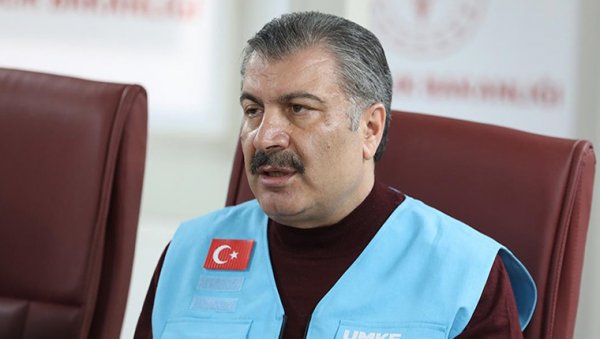 Bakan Koca, Türkiye Cumhuriyeti Sağlık Bakanlığı olarak deprem sürecinde ilk önceliklerinin yaralıların acil tedavisi ve ardından güvenli bölgelere nakli olduğunu belirterek, "Afet bölgesinde kullanılır durumdaki hastanelerimize ek olarak 27'si yabancı dostlarımız tarafından kurulan toplam 35 tam teşekküllü ameliyathanesi olan sahra hastanemiz ve 110 acil müdahale birimimizle yerinde sağlık hizmetini vermeye devam ediyoruz. Bu sağlık kuruluşlarımız, yaralılarımıza hızla ilk müdahalelerin yapılmasında büyük bir performans sergilemiştir. Yereldeki ekiplerimizin yanı sıra afet bölgesine sevk ettiğimiz 1253 ambulans ve 245 UMKE ekibi, sürekli görev yapmaktadır. Bunlarla birlikte 14 hava ambulansımız, Cumhurbaşkanlığımızın uçakları ile Türk Silahlı Kuvvetlerine ait uçak ve gemilerle yaklaşık bir hafta içinde 52 bini aşkın yaralımızı hızla bölge dışına naklettik." ifadesini kullandı.
