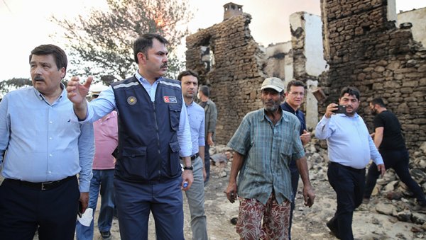 Bakan Kurum, yangının etkili olduğu Manavgat'ın Kalemler Mahallesi'nde incelemede bulundu.
