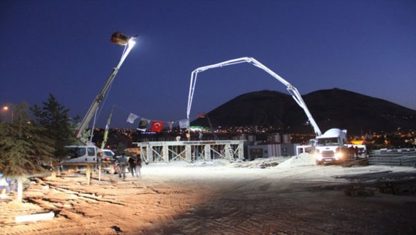 Özhaseki ve il protokolü, okunan duanın ardından temel atma törenini gerçekleştirdi.
