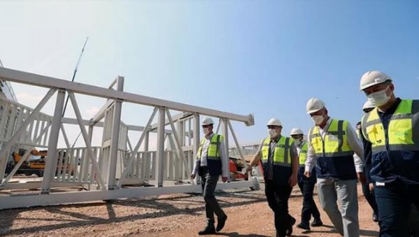 Sanayi ve Teknoloji Bakanı Mustafa Varank, inşaatı hızla devam eden Türkiye'nin Otomobili Girişim Grubu'nun (TOGG) Gemlik'teki üretim tesisinde yürütülen çalışmaları yerinde inceledi.