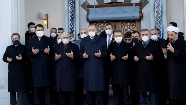 Erdoğan'a Cumhurbaşkanı Yardımcısı Fuat Oktay, Çevre, Şehircilik ve İklim Değişikliği Bakanı Murat Kurum, AK Parti Genel Başkanvekili Binali Yıldırım, Cumhurbaşkanlığı İletişim Başkanı Fahrettin Altun, AK Parti İstanbul İl Başkanı Osman Nuri Kabaktepe, milletvekilleri ve belediye başkanları da eşlik etti.