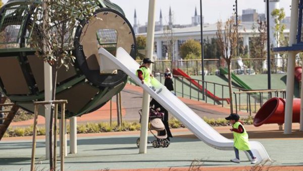 Güneşli havayı ve 29 Ekim Cumhuriyet Bayramı tatilini fırsat bilerek çocuklarıyla bahçeye gelen aileler, buradaki etkinlik alanlarında vakit geçirdi.