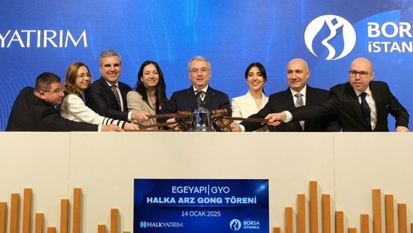 EgeYapı Avrupa GYO’nun 6-7-8 Ocak 2025 tarihlerinde yapılan talep toplama sürecinden sonra “gong töreni” Borsa İstanbul’da yapıldı. Talep toplama sürecinde 356 bin 252 başvuruyla yüksek talep alan EgeYapı GYO için yapılan gong törenine Borsa İstanbul Genel Müdürü Korkmaz Ergun, EgeYapı Avrupa GYO Yönetim Kurulu Başkanı İnanç Kabadayı, EgeYapı Avrupa GYO Genel Müdürü Didem Güneş, EgeYapı Avrupa GYO Yönetim Kurulu Üyesi Hayrullah Mezireli, Halk Bankası Genel Müdürü Osman Arslan ve Halk Yatırım Genel Müdürü Bülent Sezgin katıldı.