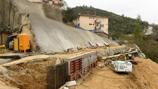 Zor bir alanda titizlikle çalışıldığını ifade eden Başkan Altepe, “Bu sıkıntılı alanda viyadük imalatı gerçekleşiyor. Öncelikle üst bölgeleri sağlamlaştırdık ve bu bölgelerde güçlendirme çalışmaları yapıldı, ki yukarıdan herhangi bir malzeme akımı olmasın... Daha sonra perde çalışmaları yapıldı ve perdeden yaklaşık 38 – 40 m içeriye kadar giren ankrajlar tamamlandı, demirleri döşenip beton döküldü. Burada yapılacak viyadüğün toplam genişliği yaklaşık 12 metreyi buluyor. 4 metreye 8 metre büyük ayaklar üzerinde oturan 12 metre genişliğindeki viyadük 34 metre derinliğe iniyor. Şu anda buradaki beton perde ve ankrajlarla artık ilk etap tamamlanıyor ve diğer etapları gerçekleşecek” diye konuştu.