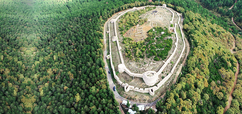 Konstantinopolis-Anadolu ticaret yolu üzerindeki en stratejik bölgelerden birine, kontrol ve savunma amacıyla 26 bin metrekare alana inşa edilen kale, adını Yunanca "Kartal" anlamına gelen "Aetos"dan alıyor. Bölgeye hakim bir tepeye inşa edilen kale, 325 metre yüksekliğiyle erişilmesi zor bir yapı olarak göz önünde bulunuyor.