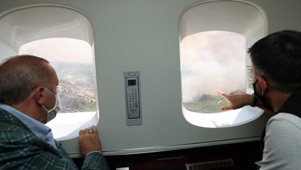 Türkiye Cumhurbaşkanı Recep Tayyip Erdoğan, Antalya'nın Manavgat ilçesinde orman yangınlarından etkilenen bölgeleri helikopterden inceledi.