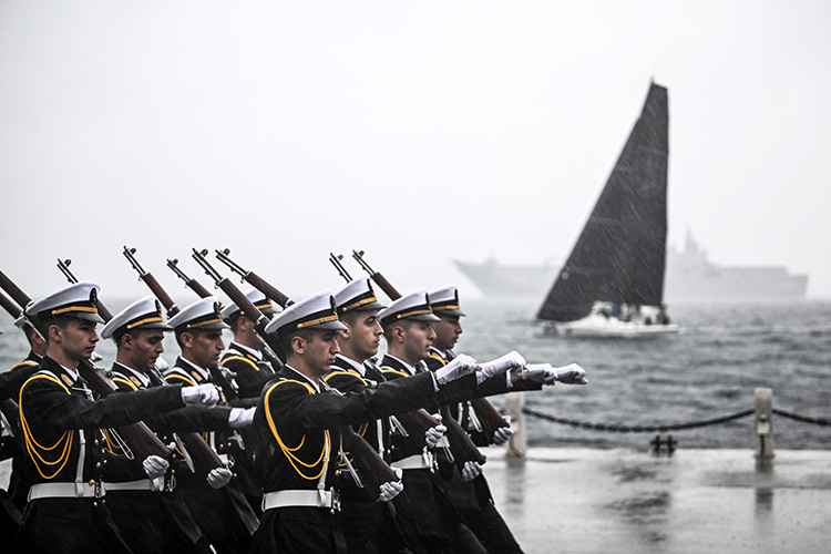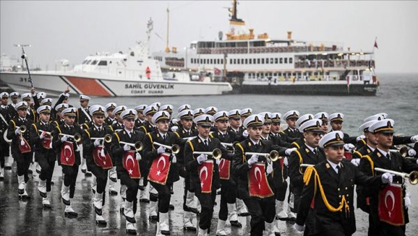 Deniz Kuvvetleri Komutanlığına ait helikopter ve su üstü unsurlarının eşlik ettiği özel vapura, Heybeliada açıklarında TCG Anadolu personeli tarafından denizcilere özgü "çimariva" adı verilen selamlama yapıldı.