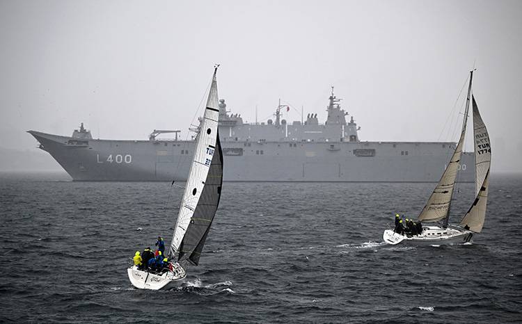 Davetlilerin yoğun alkışları arasında "1981 devresi" emekli subayların yaptığı tören geçişinin ardından Deniz Kuvvetleri Komutanlığı tarafından henüz teslim alınmayan ancak bayrak çekilen ilk milli fırkateyn TCG İstanbul rehberliğinde denizde tören geçişi icra edildi.