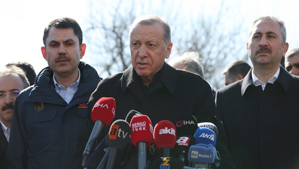 Gaziantep'in, Kahramanmaraş merkezli, ülke tarihinin en büyük deprem felaketinde ilçeleriyle beraber büyük yıkıma uğradığını belirten Erdoğan, dün depremin merkezi üssü Kahramanmaraş, ardından Hatay ve Adana'da incelemelerde bulunduğunu anımsattı.