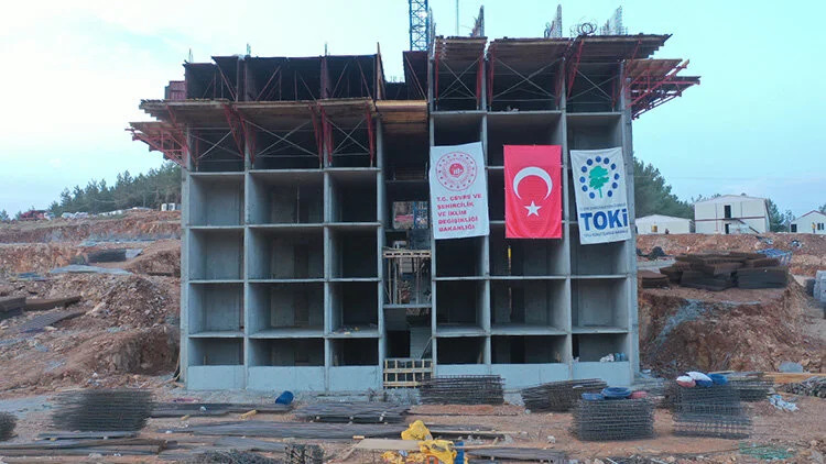 6 Şubat'ta meydana gelen "Asrın Felaketi" olarak anlandırılan, merkez üssü Pazarcık ve Elbistan olan depremlerden en fazla etkilenen yerleşim alanları arasındaki ilçede, Çevre, Şehircilik ve İklim Değişikliği Bakanlığına bağlı Toplu Konut İdaresi Başkanlığı (TOKİ) tarafından temeli atılan kalıcı konutların bir blokunun kaba inşaatında sona gelindi.