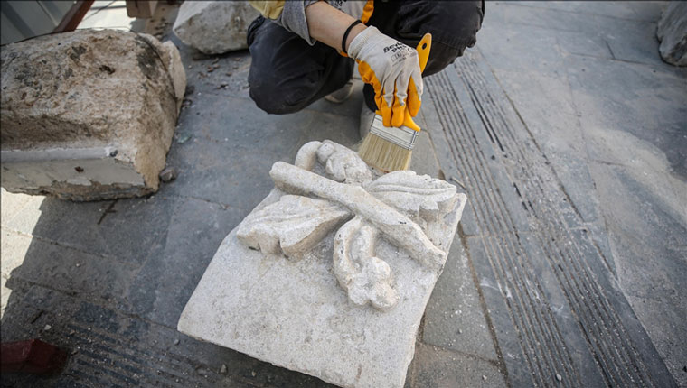 Kahramanmaraş merkezli depremlerde tamamen yıkılan Hatay'daki Antakya Ulu Camii'nin enkazında kurtarma çalışması başlatan Afet Bölgesi Kazı Başkanlığının sanat tarihçileri, yapının nitelikli eserlerini moloz yığınına dönüşen alandan çıkarıyor.