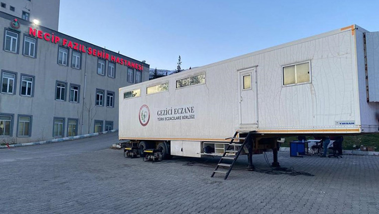 Türk Eczacıları Birliği (TEB) tarafından, Kahramanmaraş merkezli depremlerin ardından, afetzedelerin ilaç ve tıbbi malzeme ihtiyacının karşılanabilmesi amacıyla 5 ilde birden fazla noktaya "tır eczane ve konteyner eczaneler" kuruldu.