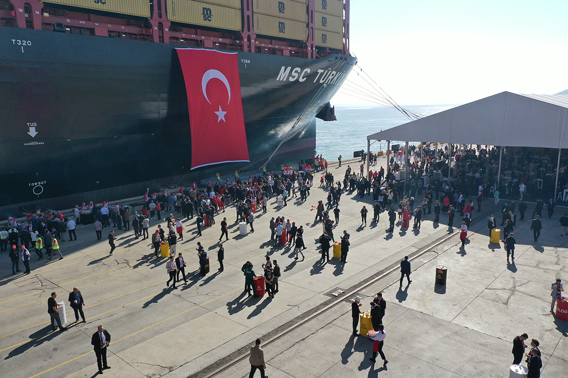 MSC Başkanı ve Üst Yöneticisi Diego Aponte'nin eşi, Asyaport Limanı Yönetim Kurulu Başkanı Ahmet Soyuer'in kızı Ela Soyuer Aponte'nin önerisi üzerine Türkiye Cumhuriyeti'nin kuruluşunun 100. yılı dolayısıyla "MSC Türkiye" ismi verilen 24 bin 346 konteyner taşıma kapasiteli, 80 metre yüksekliğe ve 400 metre uzunluğa sahip gemi Asyaport Limanı'na yanaştı.