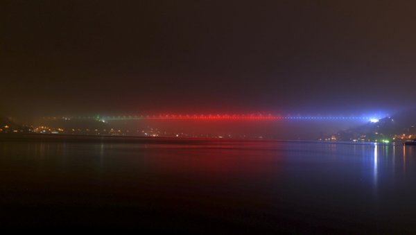 Önemli günlerde renk ve ışık gösterileri yapılan FSM Köprüsü, bu kez Azerbaycan'ın Karabağ Zaferi'nin yıl dönümü için mavi, kırmızı ve yeşil renklerle aydınlatıldı.