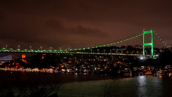 Fatih Sultan Mehmet Köprüsü, organ bağışına dikkati çekmek amacıyla yeşil renkle aydınlatıldı.