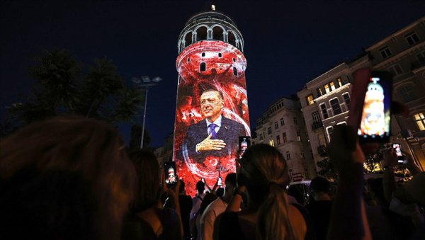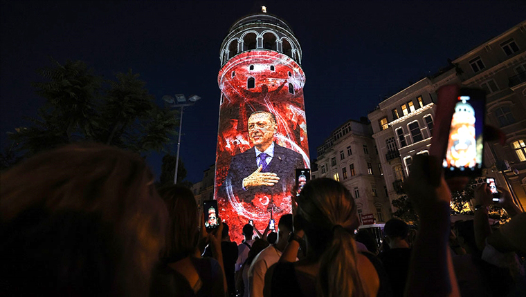 Işıklı gösteride milli iradenin zaferi "Türkiye Geçilmez" sloganıyla anlatıldı.